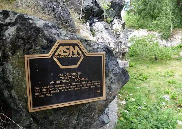 美国金属学会在伊特比村设立的纪念碑 一座因元素出名的村庄 离斯德哥尔摩不远的雷萨罗岛上,有一个叫做伊特比(Ytterby)的村庄,它在化学史上有举足轻重的地位。在化学家中,都存在一种对该村庄的夸张描述:元素周期表可以分为两部分,一部分叫Ytterby元素,另一部分叫其他元素。尽管伊特比只是一个小村庄,其对元素周期表的贡献非常大,世界其他地方能发现2个元素的都屈指可数,但在伊特比就直接产出并根据