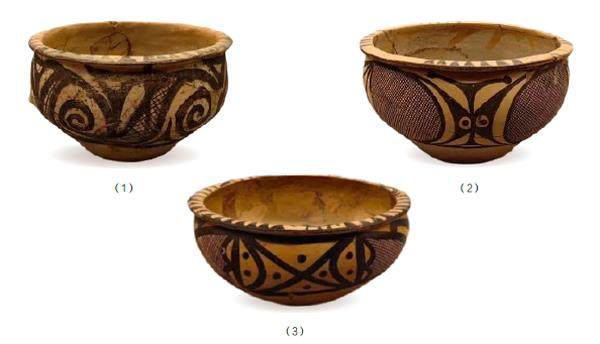 这是一组仰韶文化庙底沟类型向马家窑文化石岭下类型过渡的彩陶,所谓过渡是指兼有两种类型的特征,并在某个特征上出现重叠,很容易造成认识分歧。出现这种现象并不奇怪,乃是文化转型中的必然,从庙底沟类型到石岭下类型,石岭下类型到马家窑类型,再延续到边家林类型、半山类型、马厂类型,但凡两种类型交替都少不了这种现象。 过渡期彩陶处于两种类型的分界线上,原有文化与新生文化发生融合,新文化处于强势地位,形成老退新