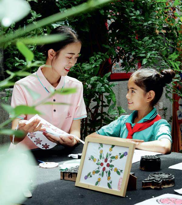 学生在英吉沙县国学书院体验国家级非遗—模戳印花布制作。 昆仑北麓,叶尔羌河滋养的绿洲之上,新疆喀什地区英吉沙县国学书院已成为南疆大地上一处独特的文化地标。 步入书院,中式建筑的古朴端庄扑面而来。国学讲堂居中而立,飞檐翘角间透着典雅气韵,孔子铜像沉静肃穆。 2019年,在山东援疆的积极推动下,占地78亩的英吉沙县国学书院建成。书院以“国学书院+讲堂+公园+场馆”的综合体形态,将孔孟故里的洙泗文